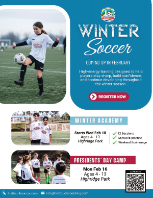 Information on dates, costs and options can be found on the Winter Academy page. Questions? Please contact First Touch soccer at info@righttouchcoaching.com.